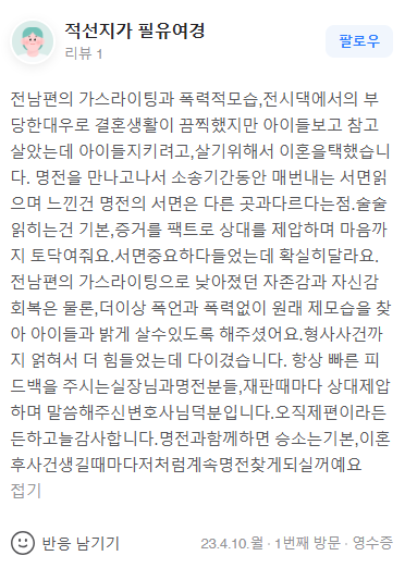 의뢰인후기로 입증된 명전에서 상담받아보실것을