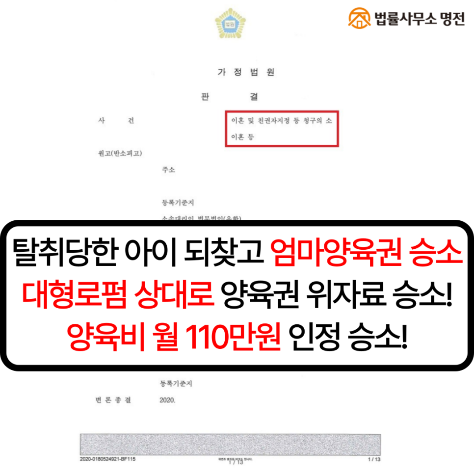 📌친권자 및 양육자로 엄마인 의뢰인 지정,
