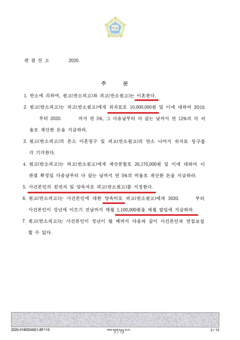 📌(혼인기간 2년) 재산분할 기여도 15%,