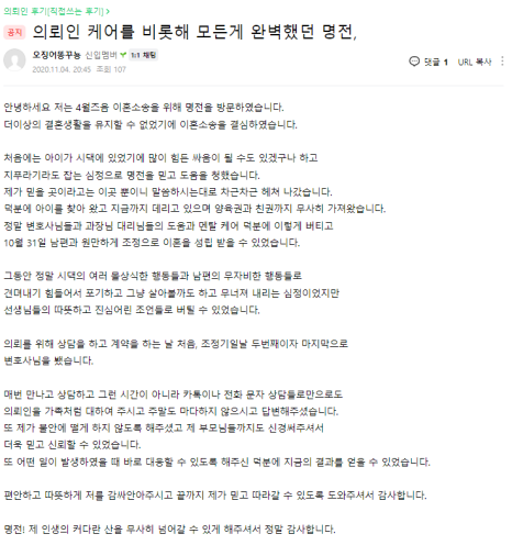 의뢰인 재산분할 승소에 유리하게 작용하고,